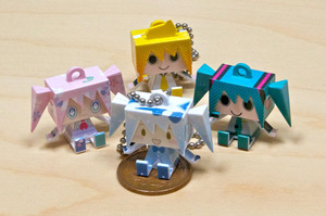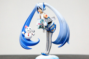 中身を組み立てるとこんな感じ。意外にしっかりしたフィギュアです。ちゃんと「初音ミク」のパッケージ持ってますね。何度も書きますが、「初音ミク」は楽器ソフトウェアなんですよ。