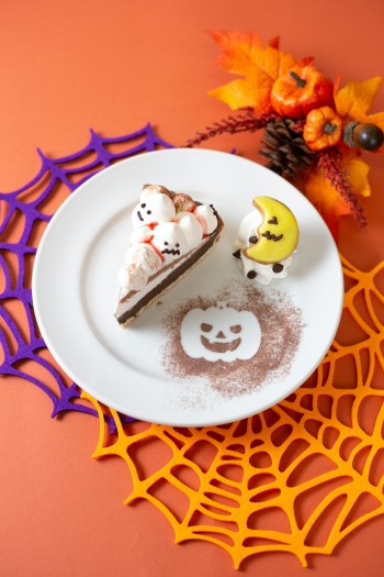 ヴィーナスフォートの噴水の目の前にある創作料理の「コバラヘッタ」では、「ゴーストチョコタルト」730円(税込)を食べながら、幻想的な店内の雰囲気を楽しむことができます。