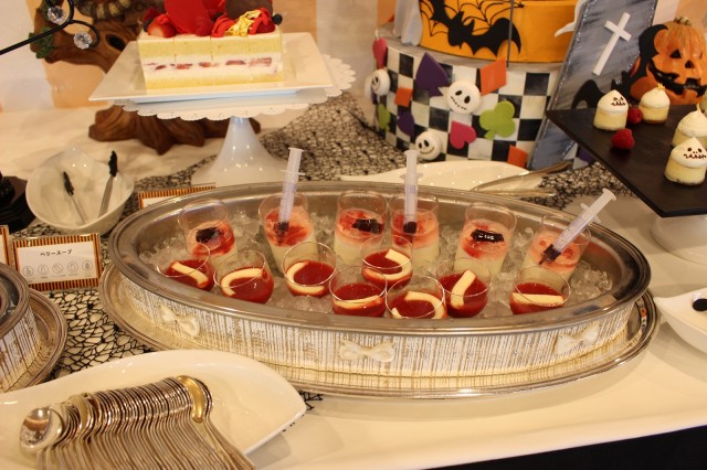 ハロウィンをモチーフにした『パンプキンニューヨークチーズケーキ』を始め、ちょっと怖いけれど、さっぱりとした味で美味しい『目玉グレープゼリー』、中にソースが入った注射器が乗っている『注射器パンナコッタ』など、どれも一品一品が手の込んだデザート。