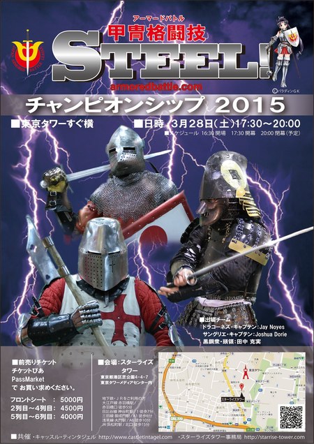 ということで、ド迫力の練習を見学させていただいたアーマードバトルの大会「STEEL! チャンピオンシップ 2015」が、3月28日、東京都港区芝公園にある「スターライズタワー」にて開催されます。