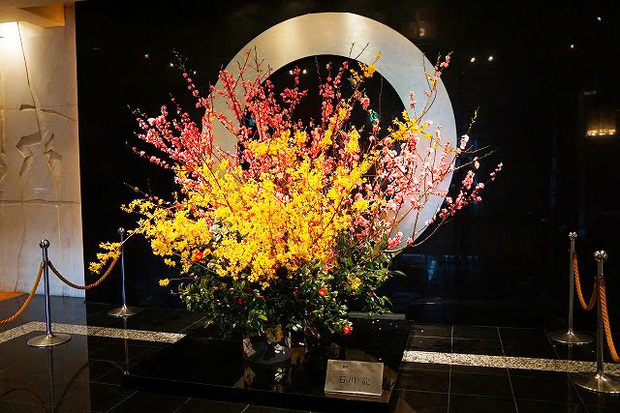 ホテルニューオータニにあるパティスリーSATSUKIなので、ホテル玄関では春らしい豪華なお花で迎えられます。エントランス風景に心が高鳴ります。