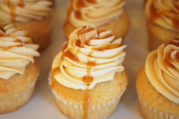 ブラウンシュガーとバニラのカップケーキにリッチなバタークリーム、そして小さなキャラメルファッジとドゥルセ・デ・レチェソース(液体のキャラメルソース)がトッピングされています。
