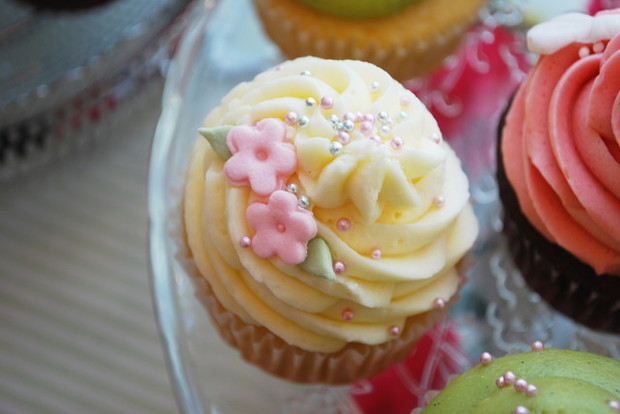 先ほどご紹介したレギュラーメニューの他に、春らしいパステルカラーとお花、そしてリボンと女性の心を震わせるほど可愛いカップケーキも発売中!!
