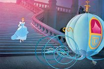 かぼちゃの馬車と、ガラスの靴。シンデレラを象徴するアイテムは、フェアリー・ゴッドマザーの魔法で生まれます。
