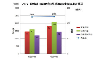 ノジマは10月16日、2019年3月期第2四半期(4月~9月)の連結累計業績の上方修正を発表した。