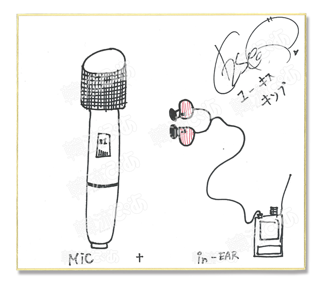 キソプ君の“宝物”はマイクとイヤモニ(イヤフォン)なんですね~。うーむ、アーティストって感じですね! イヤモニって、皆さんこだわりますからね。ちなみに、マイペースに描いていたキソプ君。と~っても丁寧にマイクの網を描いていました。スヒョン君に「あと何秒~」って言われてもキレイに斜線をつけていました。そして、描き終えたら、ケビン君に英語のつづりを確認していました。大丈夫、合ってたよ、キソプ君!