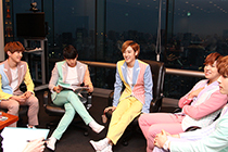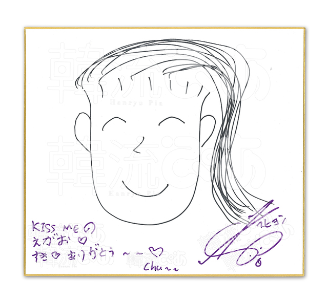 さて、WEB「韓流ぴあ」では、インタビューに加え、恒例の“お絵描き”をお願いしました。「え~~」と渋るメンバーに、「KISSmeちゃん(ファン)たちが楽しみにしているんですよ」と話したら、効果絶大! 皆さんがんばって描いてくれました~♪ 制限時間は3分。画力を発揮して、個性溢れる絵に仕上げてくれました(笑)。 ※メンバーのイライは、韓国でのドラマ撮影のスケジュールにより欠席です。