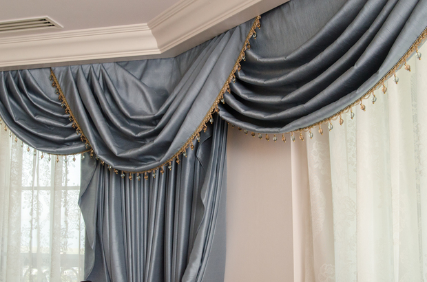 シンデレラのロイヤルブルーに彩られたドレープカーテン。