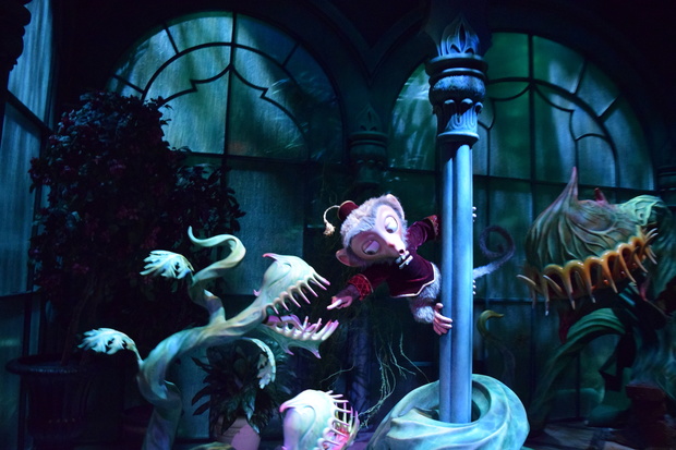 アトラクション中でゲストが乗るライドを導いてくれるのは、ヘンリー・ミスティック卿が可愛がる猿のアルバート。