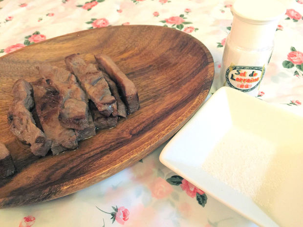 ぷにっとした食感が魅力のアメリカ産の厚切り牛タンも、8種類の塩で相性をチェックしてみました。