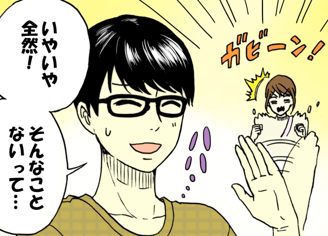 会話中まさに褒めようとした瞬間、男性の頭の中に「恥ずかしさ」が生まれます。そしてとっさに否定してしまうのです。