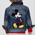 Gapのアイコンアイテムであるデニムジャケットにフーディーをレイヤードし、赤いショートパンツを合わせたミッキーは、アメリカンカジュアルを象徴するようなコーディネートで、Gapでしか見ることのできないオリジナルのデザインに昇華しました。