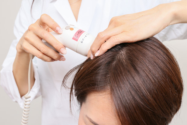 「ライター池田さんは、みずみずしさのある、やわらかそうな頭皮ですね。脂っぽさが気になるとおっしゃいましたが、皮脂を落とし切れていないのかもしれません。洗髪時には指の腹を使って、髪の根本から洗うことを意識してください」