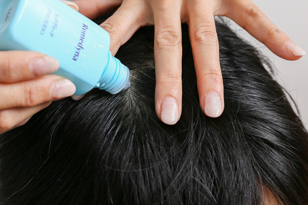 江浜さんに、頭皮トラブル治療に使える「エンクロン レメディーナ」(第2類医薬品、以下レメディーナ)を紹介いただきました。ズボラ女子でも使いやすい、直接地肌につけるだけの簡単なアイテムです。