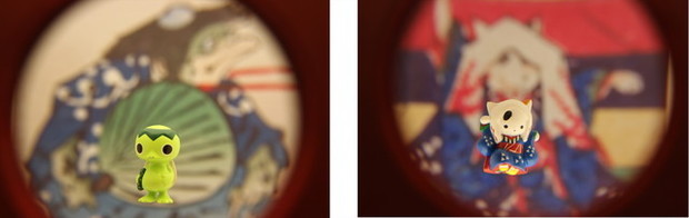 このエリアのテーマは見世物小屋で、のぞき穴をのぞくと妖怪が見える仕掛けなどもある。穴の向こうにあるのはニセモノと分かっていても、何だかドキドキしてしまう。実際に見えるのは可愛らしい妖怪たち。