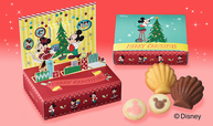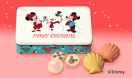 今年は、ツリー型ボックスや開くとミッキー&ミニーが飛び出すBOX、冬らしいデザインの缶、スウェット地のトートバッグと、アフターユースが楽しい新作パッケージにさくさくクッキーやふんわりマドレーヌをアソートしました。