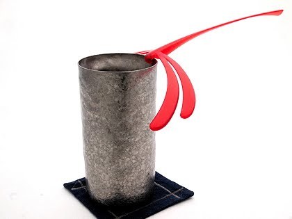 さらに嬉しい事に、このトンボをとまらせたままでも、普通に飲み物が飲めるのだ。羽根の角度も考えられていて、持つ手にも、飲む口にも、全く邪魔にならない。もちろんグラスを傾け過ぎると、こちら側に滑り落ちるけれど、ゆっくりと飲めば最後までトンボを向こう側に眺めながら、酒やお茶が楽しめる。トンボが落ちるようじゃ、まだまだリラックスが足りない、とかね。使えば使うほどに、バランスや長さ、角度がとても綿密に計算されている事が分かって、そのアイディアと技術を楽しみながら、お湯割りでもホットカルピスでも、ホットワインでも、色々とかき混ぜながら飲める、愛用のマドラーを持ってるのもカッコいいと思うのだ。