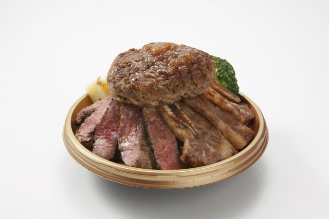 赤身ステーキ、姿焼きの丼にハンバーグを追いのせ!