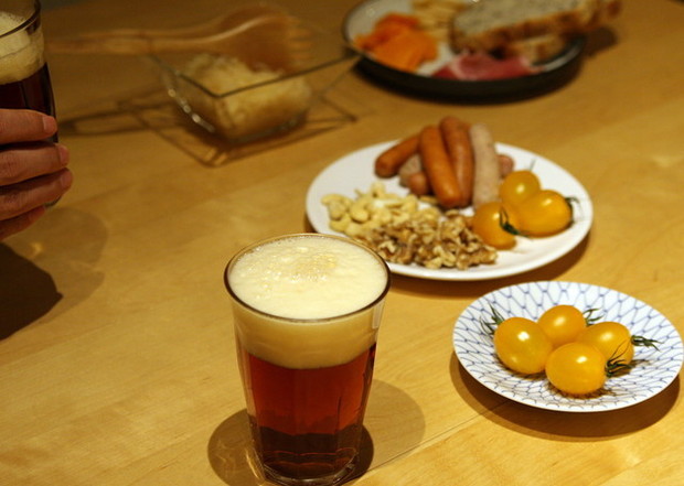 「独特の香りがいいね。しっかりとした味わいでソーセージによく合う。普段飲んでるビールより、コクがあるな」