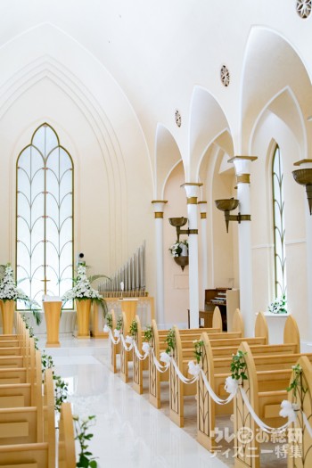 オルガンと聖歌隊がディズニー映画の名曲を奏で、プリンセスが誕生するような幸せな空間に満たされます。