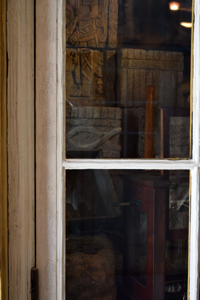 お店の入り口より右手、サルードス・アミーゴス・グリーティングドックの入り口付近からお店の窓を見てみると、「セキバン」に右の印がありました。