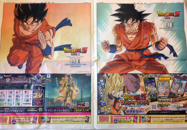 公開に先がけて、本日の産経新聞では4Pにわたる広告を展開。そのなかで、鳥山による悟空の描き下ろしイラストが4点掲載された。劇中で着用する新しい道着を身につけた特別なビジュアルで、「かめはめ波のポーズ」や、「オッス!」とおなじみの挨拶するところが描かれている。