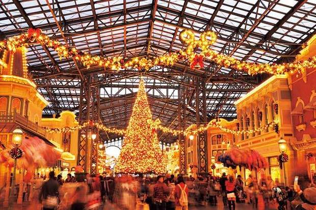 ワールドバザールの中央に高さ約15mのクリスマスツリーを設置するほか、パレードにこの季節だけ出演するキャラクターも登場する。
