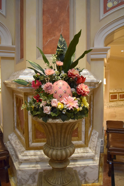 ロビーに飾られたイースターエッグは様々なデザインがあり、他の場所にも春を祝う装飾が施されています。