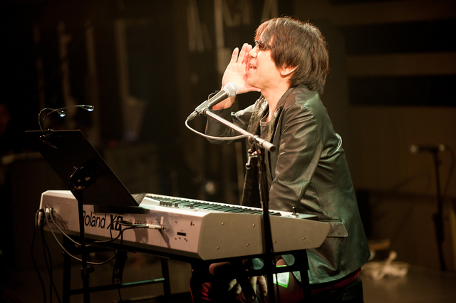 そのRAM RIDERは、やっつんとあのIMALUが結成したユニット・SUSHI PIZZAの『マイティDISCO』のプロデュースも手がけた関係の深い存在だけに、今回の『YATSUI FESTIVAL』では外すことができない人選だろう。そんな彼のステージ上は、暗闇の中で顔や手足は見えず、メンバーの身を包んでいる衣装にあしらわれた蛍光の光がうごめく異様な光景──。そのレーザーかLEDのようなきらめきが、生演奏のギターとエレクトリック・サウンドに合わせて躍動する姿はじつに幻想的。そして、宇宙を駆ける光の光線のごとく広がり、収縮し、またさらに大きくスケール感たっぷりに広がっていく音色は、“AUDIO GALAXY”というイメージをまさに地で行くような感触だ。そんなきらびやかで近未来的な雰囲気のRAM RIDERから、鍵盤の弾き語りというシンプルなスタイルで臨んだ木根尚登へと繋がっていく好対照ぶりも面白い。
