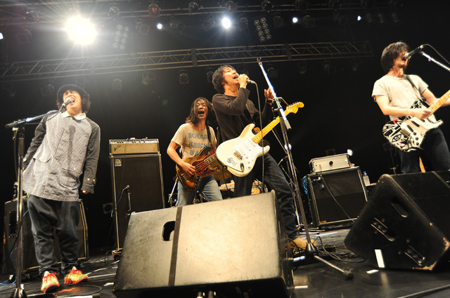 昼間に会ったゴーイング・松本素生と同じ言葉を、曽我部恵一も嬉しそうに叫ぶ。そう、今日は本当に“祭り”と言う表現がぴったりだ。やっつんもステージに合流してコーラスを思いっきり叫んだ『青春狂奏曲』の風景を眺めていると、音楽で心をときめかせることがいつまでも出来る人間はいくつになっても“青春”は終わらないんだな、なんてことを思ってしまう。年齢もジャンルも何も関係なく、音楽の様々な楽しさを全身で感じまくっている空間──。この『YATSUI FESTIVAL』のステージに立っていたのは、そんな愛すべき音楽バカ達ばかりだった。