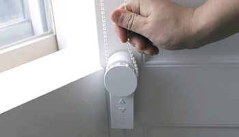 Blind Engineは、市販されているロールタイプのブラインドに対応。2種類のギアを搭載し、通常の開閉コードや大小のボールチェーンでも巻き取れる。コード・チェーンに異常を検出した場合、異常な追加重量、圧力を検知した場合には、自動停止する安全制御機能も備えている。両面テープとネジを同梱し、住居の状態に合わせて簡単に取り付けることができる。
