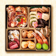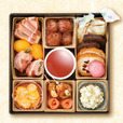 ウルトラマンが描かれた特製の重箱に詰められたおせち料理