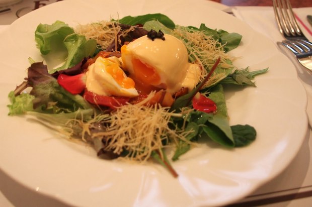 ナイフを入れると、ゆっくりと流れていく黄身が食欲をそそります。