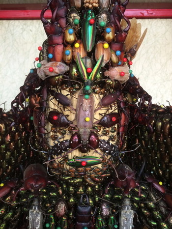 稲村米治さんが昆虫の死骸で制作した千手観音像や新田義貞像 を巡るツアー。JR 上野駅中央改札集合。