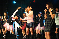 1000人規模の大会場を満員に埋めたNegicco。まず場内アナウンスから楽しませてくれましたね。Nao☆さんお得意のベッタベタギャグを連発しながら、ファンの皆さんとコミュニケーションを取っていきます。それに乗っかるNegiccoファンの皆さんは、Nao☆さん風に言えば「あったかいんだからぁ~♪」です(笑)。いや、この場内アナウンスが面白すぎで、お客さんに「ほら!ザワザワしない!」とNao☆先生のダメ出しがあったりで最高でした。ステージにはネギ色の大垂れ幕。いよいよ始まります!