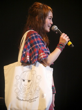 ここでいったんMCタイム、というよりも販促タイムに入ります(笑)。今回のツアーグッズやコラボ商品を次から次に紹介してくれるNegicco、毎回グッズがオシャレですよね。チェック柄のネギフラッグキャップをかぶって「私もオシャレになったー!」と狂喜乱舞したり、「こどものおもちゃ」の小花美穂先生が誕生日記念トートバッグを書き下ろしてくださったことに感激、「遺影にしたい!」など暴走トークのNao☆さん安定の面白さ(笑)。そんなNao☆さんに「シナナイデ~!」とお客さんから悲鳴が上がると、Kaedeさんが「やめないで、よりも深刻ですよね…。」とボソッと言ったのもツボでした。