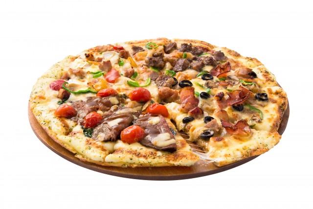 さらに、もっちり濃厚なモッツァレラチーズをミミに360度たっぷり乗せ、その上にパルメザン、チェダー、ゴーダの3種のチーズとハーブをふんだんにトッピングしたチーズ好きにはたまらない新しい生地「チーズバースト」を使用しています。