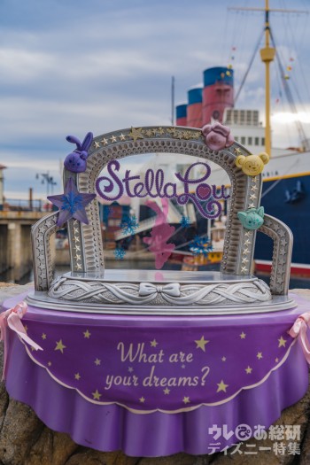 フォトスポットは、ダッフィーとステラ・ルーが初めて出会ったコロンビア号が見える場所にあり、ステラ・ルーが夢見るステージをイメージしたものになっています。