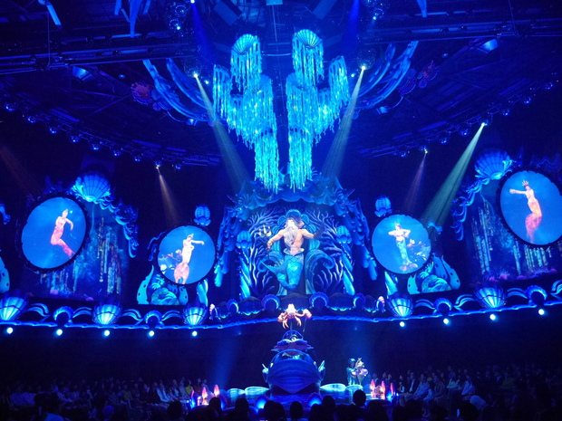ショーの概要はトリトン王が登場し、セバスチャンとアリエルの姉達が登場。しかしアリエルの姿が無く、トリトン王が怒ってしまいます。