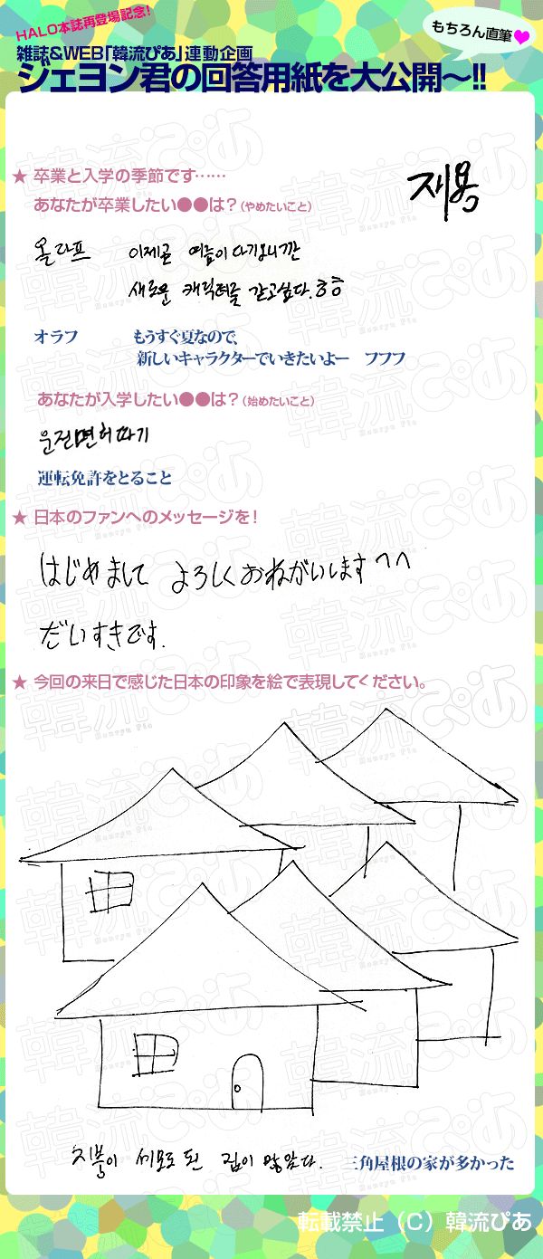 ☆お宝☆ ジェヨン君の直筆アンケート&絵画を大公開!
