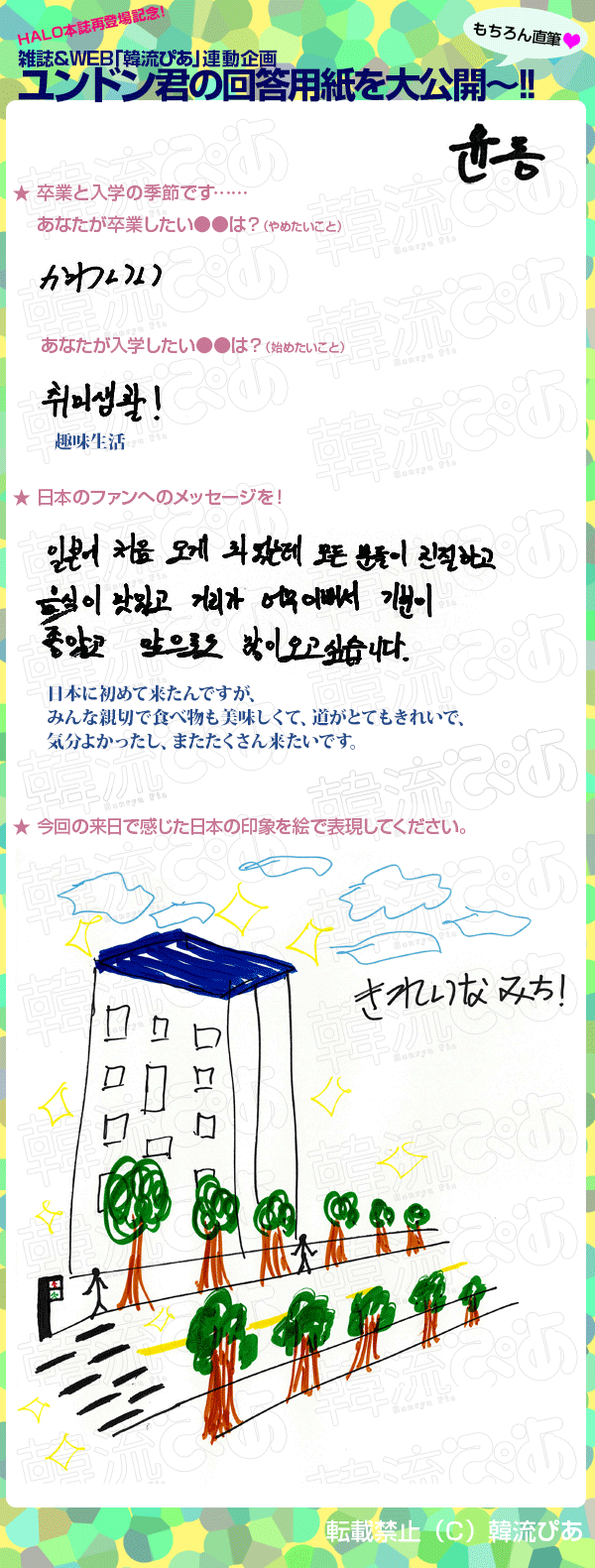 ☆お宝☆ ユンドン君の直筆アンケート&絵画を大公開!