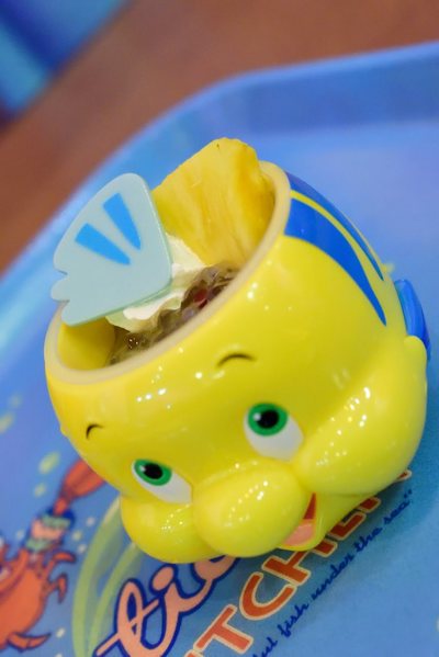 フランダーのヒレをイメージしたトッピングに、パイナップル、ホイップクリームが添えられています。
