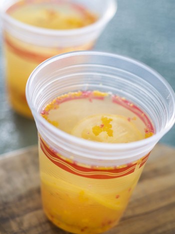 スパークリングワインをシトラスジュースで割ったカクテルはレモンゼリー入り。