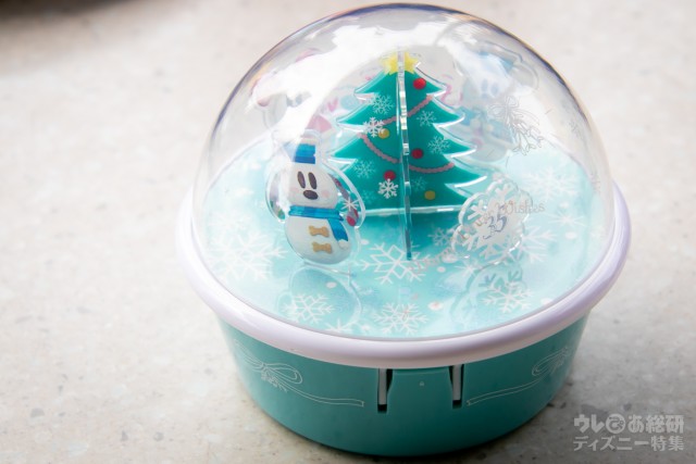 透明のドームの中には、スノーミッキー、スノーミニーと、今年初登場のスノープルートがクリスマスツリーを囲むように置かれています。