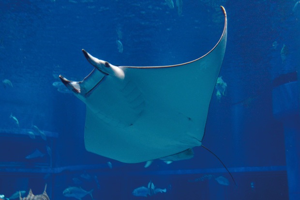 軟骨魚類の一種で、エイ目の軟骨魚の総称をエイという。上下に扁平な体と、ムチのような細長い尾をもつ。発達したヒレを器用に動かして水中を颯爽と泳ぐ姿に、水槽の前の来館者の目は釘付けに。
