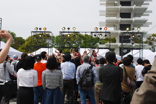 会場に入ると、入り口にすぐそばにある特設ステージでアイドルのステージが始まっていました。熱狂的なファンが大きな声で声援を送っているので、すごく会場が賑やかです。