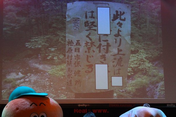 ・此処より上流は【 】に付き【 】は固く禁じる(檜原村に実際にある看板)