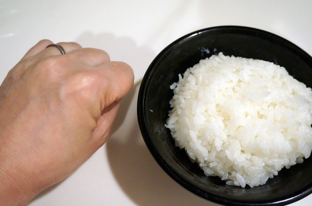 では、ごはんを握りこぶし分用意してみましょう。これくらいかな?
