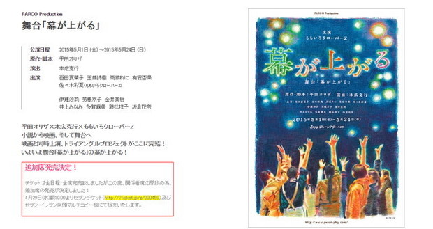 まずご紹介したいのが、ももいろクローバーZの舞台「幕が上がる」。演劇部少女たちの青春を描き好評を博した同名映画を舞台化しています。トップアイドルとして大会場を埋め尽くしてきた彼女たち。その演技力が、舞台でどう映えるのでしょうか? 演劇部を描いた映画を舞台化、というのはかなり面白い展開ですよね。開演前から期待が高まります。このGW、注目の公演になることは間違いありません。
