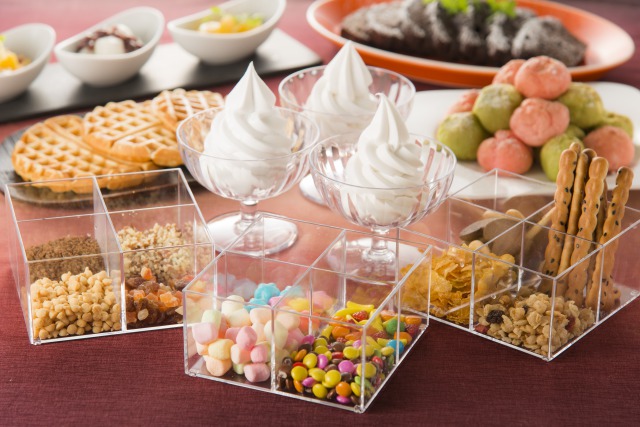 ソフトクリームやワッフルなど、自分で作れるデザートが用意されているので、最後まで食事を楽しむことができます。